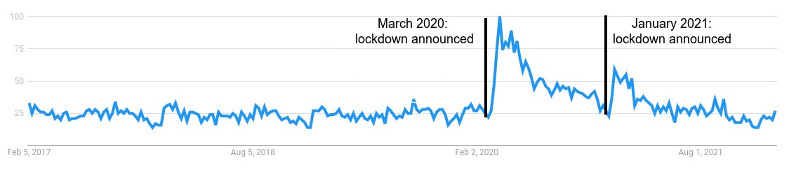 They’ve had a good couple of years. More time at home, coupled with furlough, has meant that online learning platforms saw a surge in 2020. Google Trends, which shows interest in phrases like ‘online courses’ peaked when lockdowns were announced, then waned as restrictions were eased.