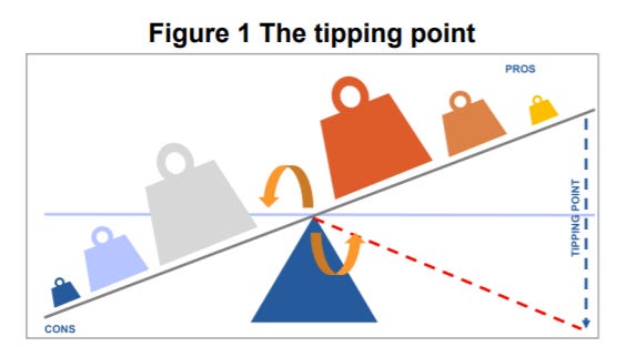 A nice metaphor to sum all this up comes from a 2018 DfE paper into adult and lifelong learning: “the trigger to participate in learning for each adult comes at a tipping point where personal benefits (or ‘pros’) outweigh personal costs (or ‘cons’)”.